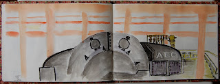 E os desenhos de 10 minutos sem ter tempo para colorir, deixaram no meu caderno um registo das várias paragens, onde escolhi o que me chamava mais a atenção, não me preocupando com os "bons" resultados.