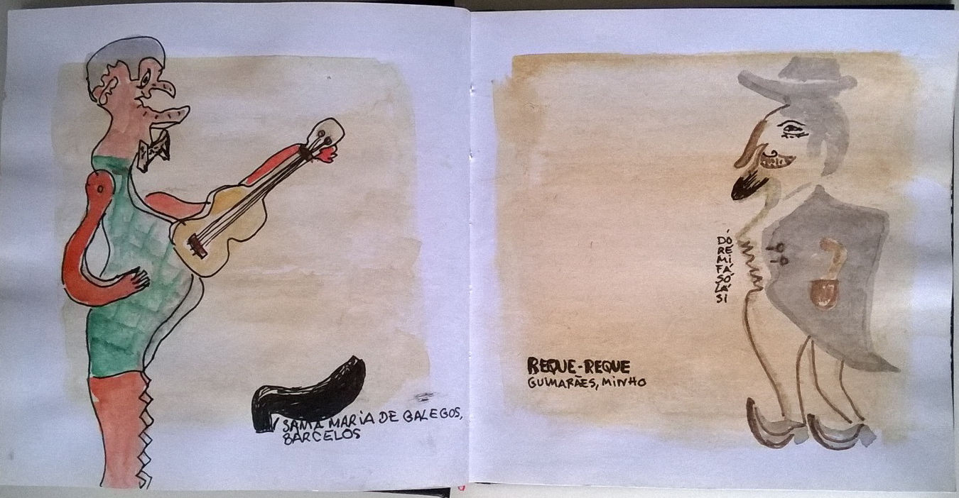 Este ano só fui no último dia, e o tempo não ajudou. Apesar de não ter praticamente chovido ( uns ligeiros pingos) esteve sempre algum frio e muito vento. Não sei se foi por causa das condições incomodativas - não gosto de vento -mas não desenhei nada que me agradasse. No entanto valeu a pena, pelo reencontro de pessoas que só vemos nessas ocasiões - portugueses, brasileiros e espanhóis - pelos novos conhecimentos que se fazem, por um dia bem passado. Desenhos e muita conversa.